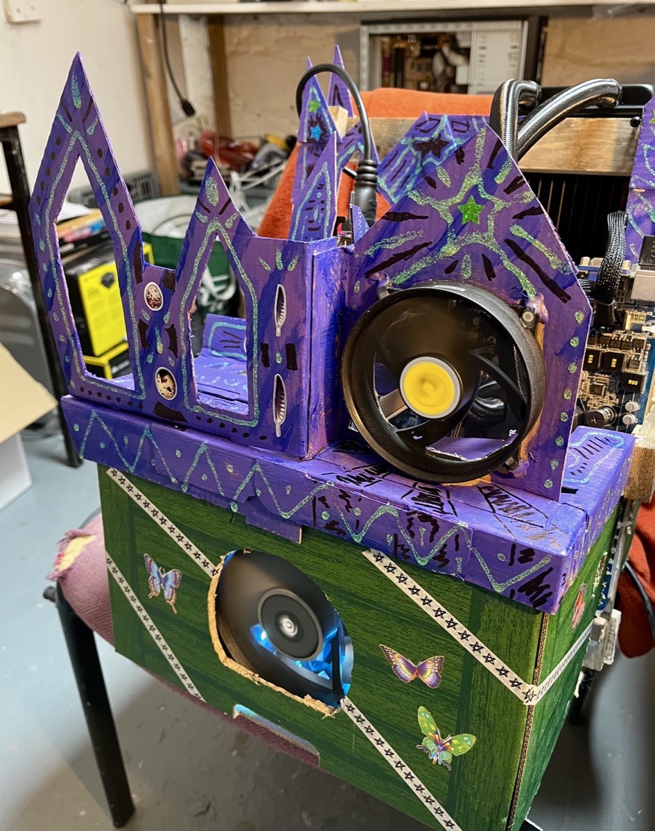 I made a custom cardboard PC case to for showcasing Ozwomps Voyage! Here it is in progress!